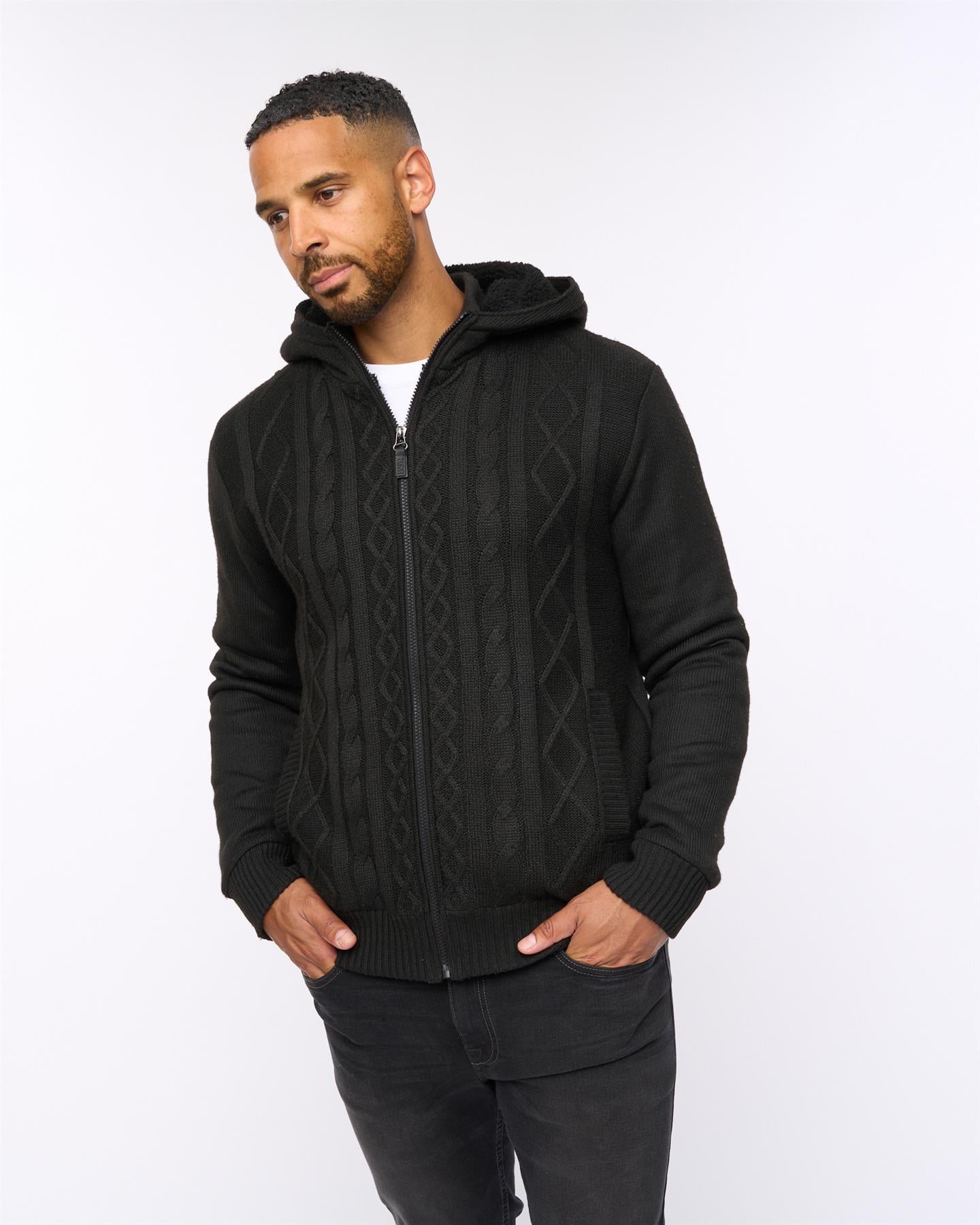 - This zip-through hoodie blends a timeless cable-knit design with a soft textured finish