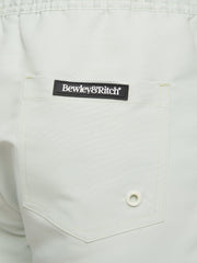 Men's pastel taslan swim shorts with inner mesh lining, side pockets, contrast drawcord with contrast plastic eyelets & aglets, print to leg and back pocket welt with pu badge.